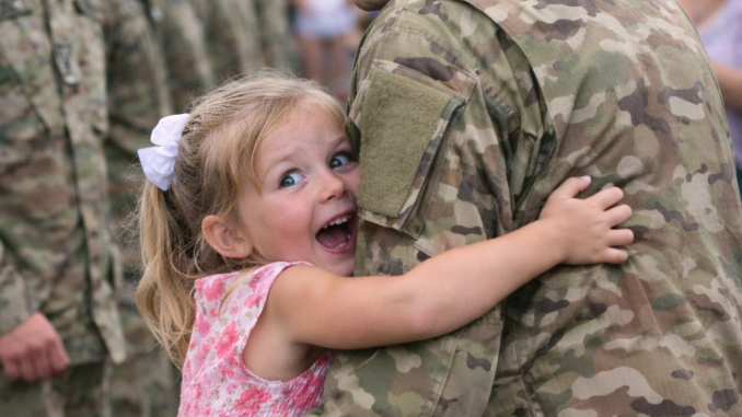 A little girl suddenly broke away from the line, her eyes locked on a soldier she believed was her dad. Without hesitation, she ran straight toward him and wrapped her arms around him from behind, holding tight like she hadn’t seen him in forever.