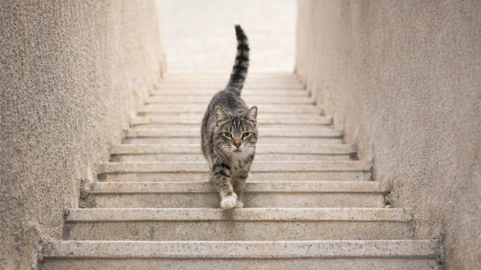 Is the cat going up the stairs…