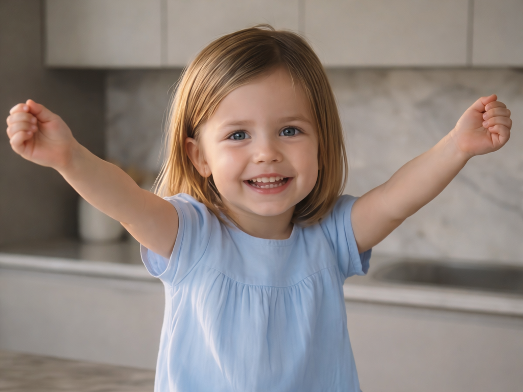 She lifted her arms with excitement, laughing softly, as if discovering a whole new world in a single moment.