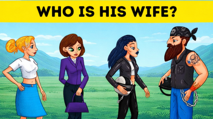 At first glance, this image looks simple — a biker man standing in front of three very different women. But don’t let the simplicity fool you. This is one of those visual puzzles that requires attention to detail and a bit of logical thinking.