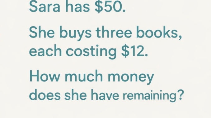 Imagine Sara walking into a bookstore with $50 in her hand. She is excited to buy a few books, maybe for school, maybe for fun, or maybe just because she loves reading. She looks around, chooses the ones she wants, and finally picks three books. Each of those books costs $12.