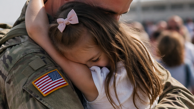 At the base, families gathered, holding signs, waving flags, and wiping away tears before their loved ones even stepped off the bus.