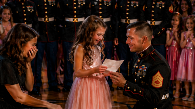 I never imagined my daughter’s night at the father-daughter dance would end in quiet tears… until a group of Marines walked into the gym and changed everything. In a moment where grief met pride, I realized just how far love and loyalty can reach. That night, Daniel’s promise found its way back to us.