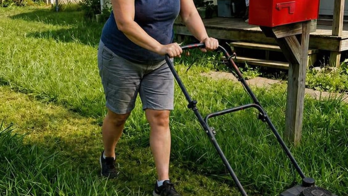 At 82, she was struggling with an old lawn mower, trying to cut grass that had grown far too tall. She smiled at me, but her eyes told a different story.