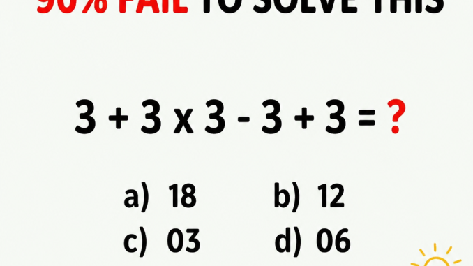 Many people choose 18 because they add the numbers first, but multiplication must always be done before addition and subtraction.